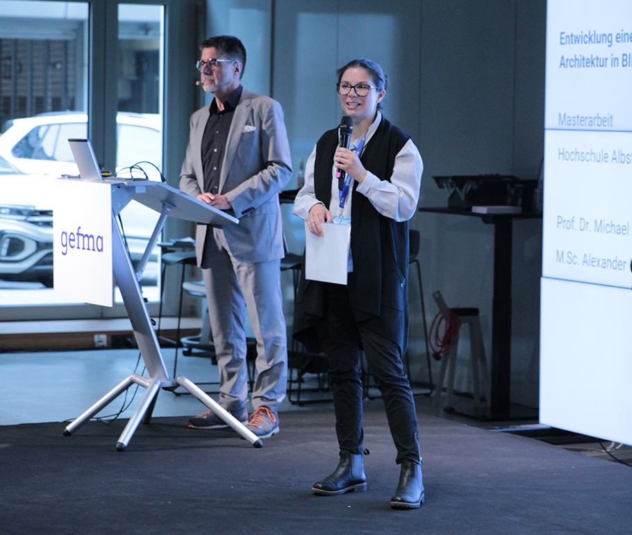 Der Karriereweg von Bianca Schnell-Kleck ist vielseitig: Zunächst arbeitete sie als Biologielaborantin, bevor sie ein Architekturstudium absolvierte. Heute arbeitet sie als Projektleiterin für Laborplanungsprojekte in einem Planungsbüro und berät ihre Kundinnen und Kunden beim Aufbau komplexer Laborumgebungen. Durch den für sie berufsbegleitenden Masterstudiengang erhielt sie eine vertiefte und umfassende Perspektive auf die Fabrikplanung in der Life-Science-Industrie und konnte die in ihrer Labortätigkeit sowie in ihrer planerischen Praxis erworbenen Fachkenntnisse gezielt erweitern und vertiefen. Die Auszeichnung mit dem mit 1000 Euro dotierten gefma-Förderpreis sieht sie als Bestätigung dafür, dass der Einsatz von BIM in Labor- und Fabrikplanungsprojekten enormes Potenzial bietet.