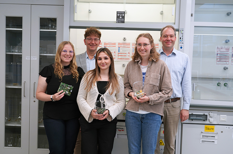 Albstadt/Sigmaringen. Wie lässt sich Gold aus Elektroschrott möglichst umweltfreundlich, wirtschaftlich und sozialverträglich zurückgewinnen? Mit dieser hochaktuellen Frage haben sich Marlena Haag, Anna Kraus und Selin Yavuz im Rahmen ihres Industrieprojekts im Studiengang Sustainable Engineering an der Hochschule Albstadt-Sigmaringen beschäftigt. Das interdisziplinär begleitete Projekt mit dem Titel „Goldfinger“ zeigt: In Elektroschrott steckt nicht nur viel Potenzial – sondern auch jede Menge echtes Gold.