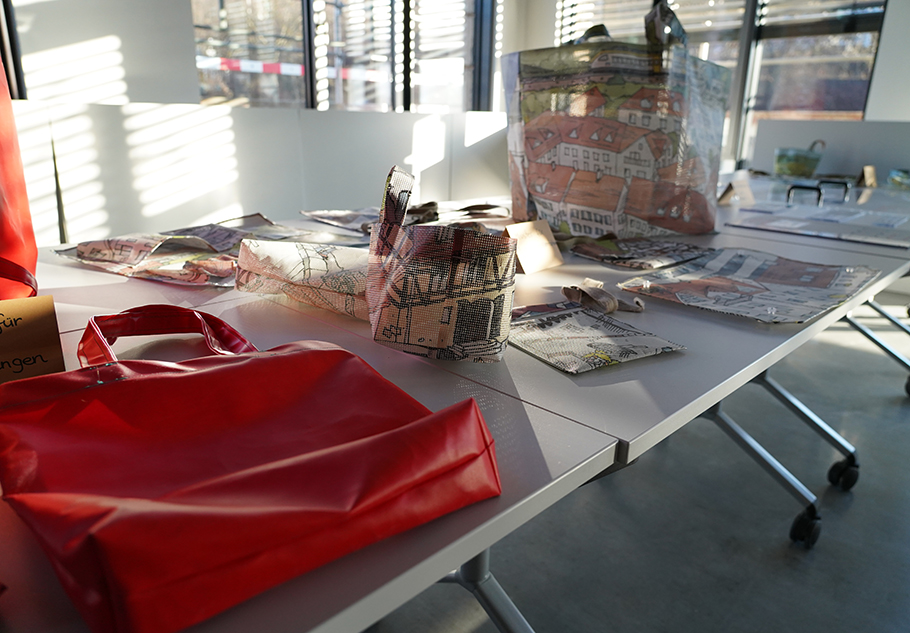 Albstadt/Sigmaringen. Was passiert mit riesigen Werbebannern, wenn sie nicht mehr gebraucht werden? Acht Studierende der Hochschule Albstadt-Sigmaringen haben darauf gemeinsam mit sechs Beschäftigten der Lebenshilfe Zollernalb eine kreative Antwort gefunden: Im Rahmen eines Industrieprojekts verwandelten sie ausgediente Sichtschutz-Banner der Volksbank Balingen in praktische Alltagshelfer.