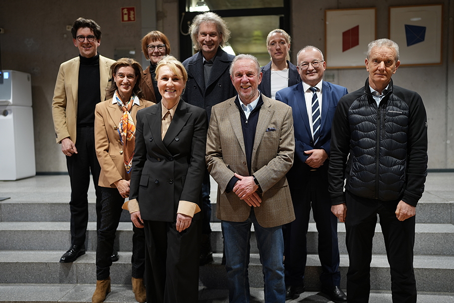 Sie bilden den Hochschulrat (hinten, von links): Prof. Dr. Nils Herda, Katja Praegla, Prof. Sven Gerhards, Prof. Dr. Astrid Klingshirn sowie (vorne, von links): Susana Martín de Vidales, Andrea Verpoorten, Prof. Dr. Hugo Hämmerle, Bernd Schatz und Bernd Stauß.