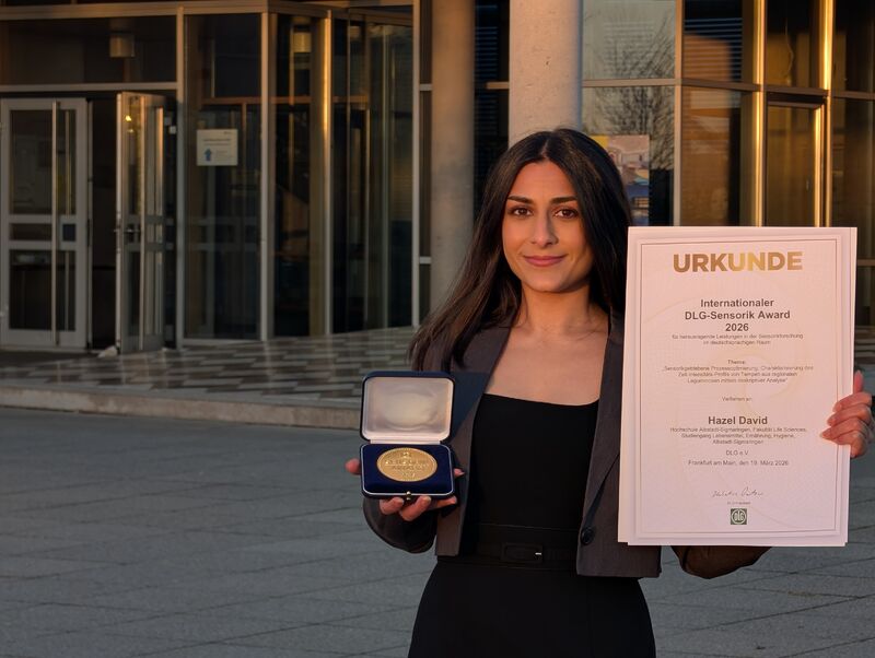 Hazel David aus der Fakultät Life Sciences wurde mit dem Internationalen DLG-Sensorik Award 2026 ausgezeichnet. Der renommierte Nachwuchspreis würdigt herausragende wissenschaftliche Arbeiten im Bereich der Lebensmittelsensorik.